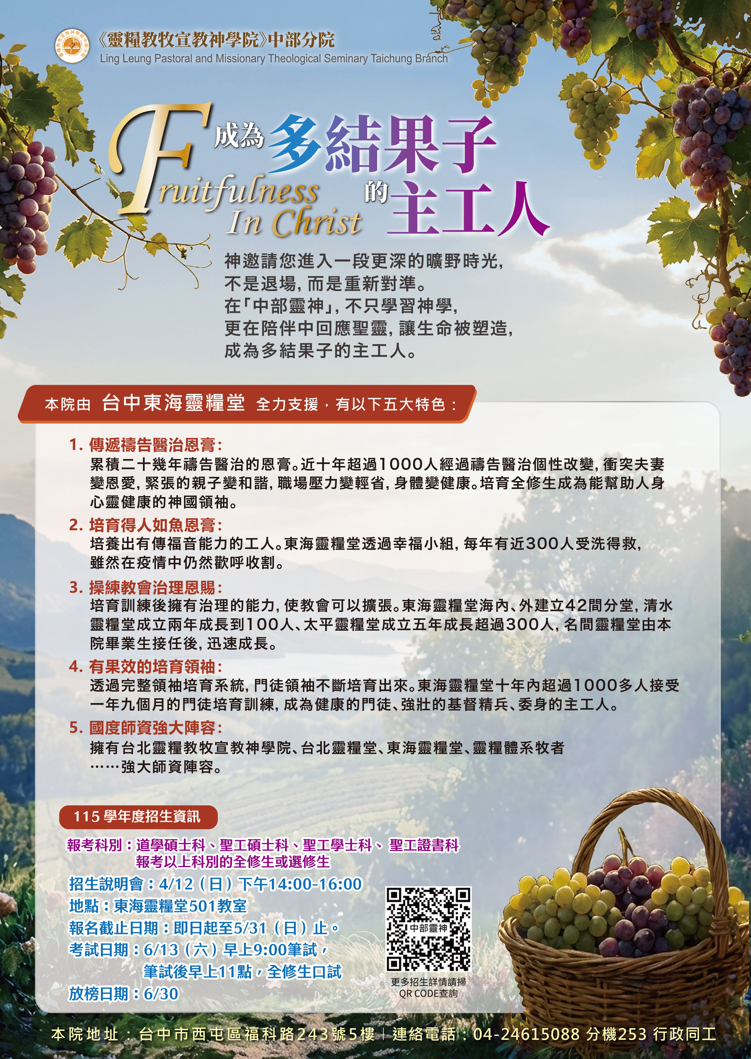 靈糧教牧宣教神學院中部分院
